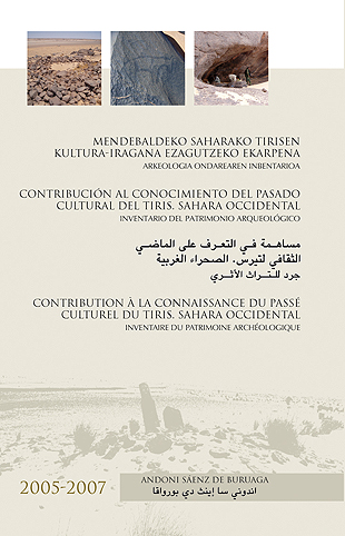 ![]() | AUTOR: Sáenz de Buruaga, A; (2008). TÍTULO: Contribución al conocimiento del pasado cultural del Tiris, Sahara Occidental. Inventario del Patrimonio Arqueológico, 2005-2007. EDITA: Servicio Central de Publicaciones del Gobierno Vasco-Departamento de Cultura, Vitoria-Gasteiz, 2008, 453 p. I.S.B.N: 978-84-457-2849-9 |